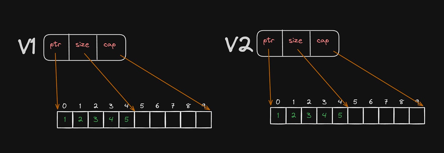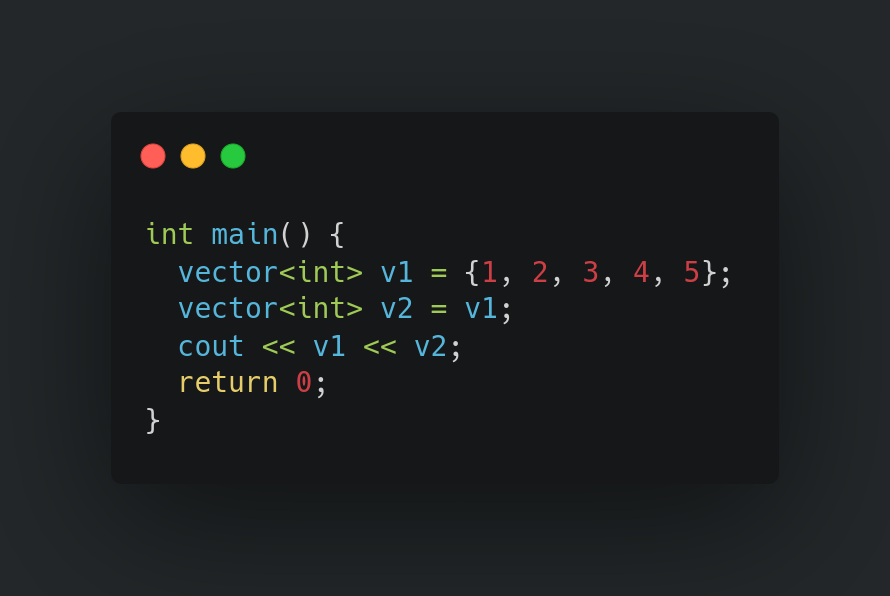كود عادي هيعمل vector و في السطر التاني هينسخ copy كل حاجة من الvector الأولاني في الvector التاني وهيعمل pointer جديد و ينسخ الsize والcapacity بتاعت الvector الأولاني زي ما موضح في الصورة