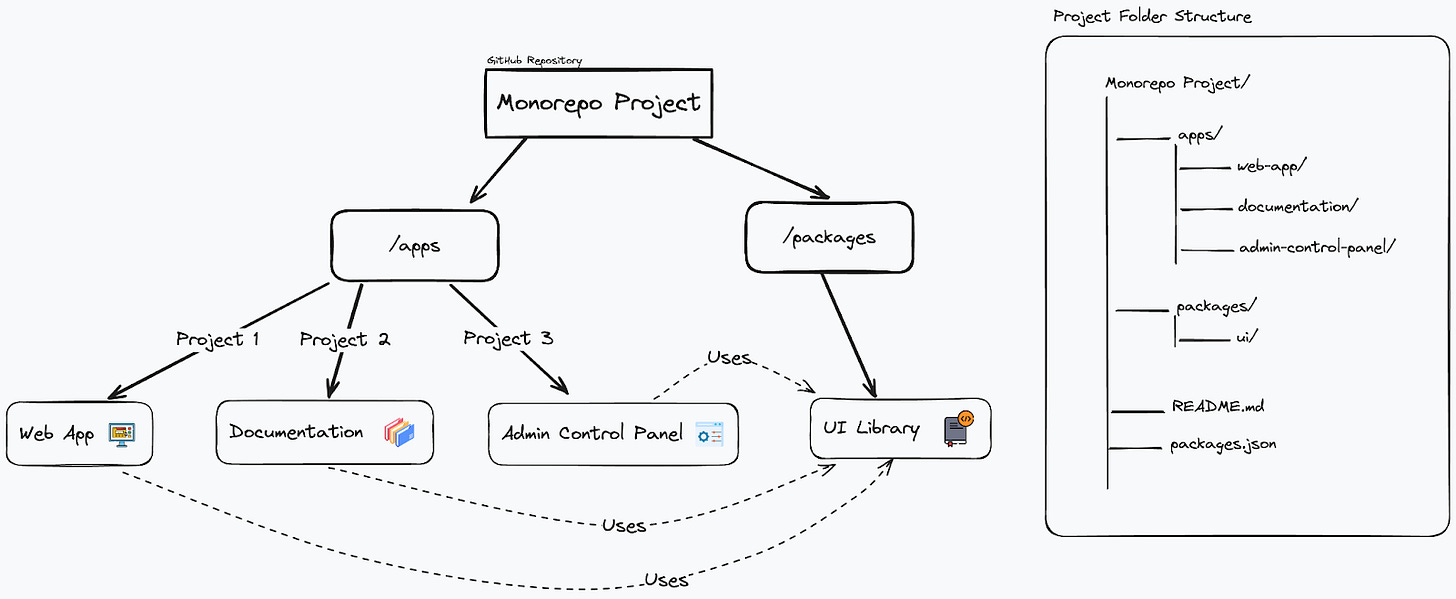 الـ”Monorepo" هي اختصار لـ "Monolithic Repository"، وهو ببساطة طريقة لإدارة المشاريع حيث يتم تخزين عدة مشاريع، بما في ذلك التطبيقات والمكتبات والأدوات، في مستودع واحد بدلاً من توزيعها على مستودعات متعددة. تخيل أن لديك مكتبة