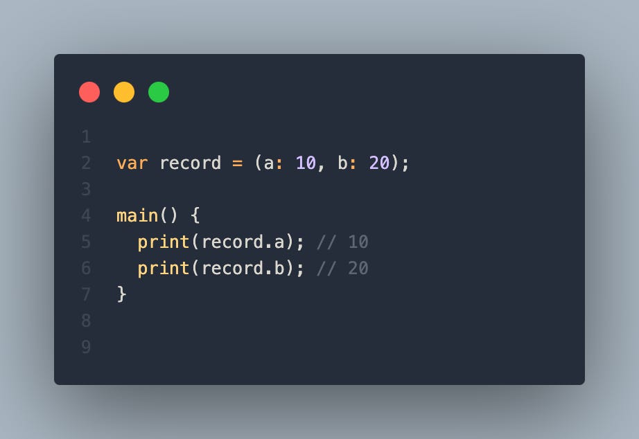 واحدة من المزايا الجديدة اللي نزلت في لغة Dart 3 هي الـ Records، والـ Record واحدة من الـ Data Structure اللي بتتميز انها بتقدر تخزن عدد ثابت من القيم من أنواع مختلفة.