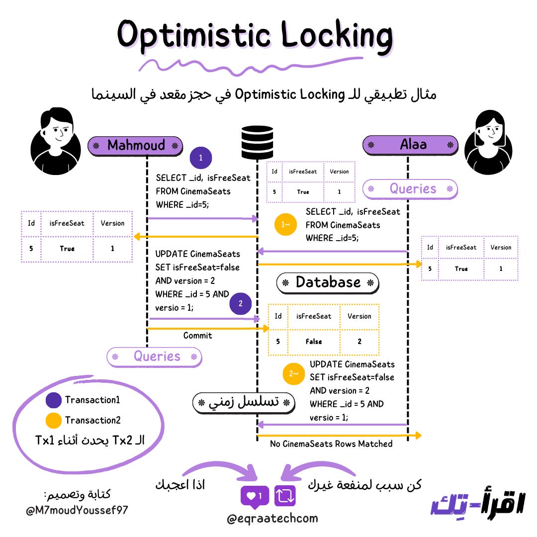 نقدر نتخيل الـ Locking كأنه زي القفل اللي بنقفل بيه على أي حاجة عشان نمنع أي حد من الوصول ليها. فالـ Databases أحيانًا بتحط قفل على الـ Row أو الـ Record لما يكون فيه Transaction شغال عليه عشان تمنع أي حد من الوصول للـ Row ده, اكنه دخل (الحمام وقفل وراه الباب) ..