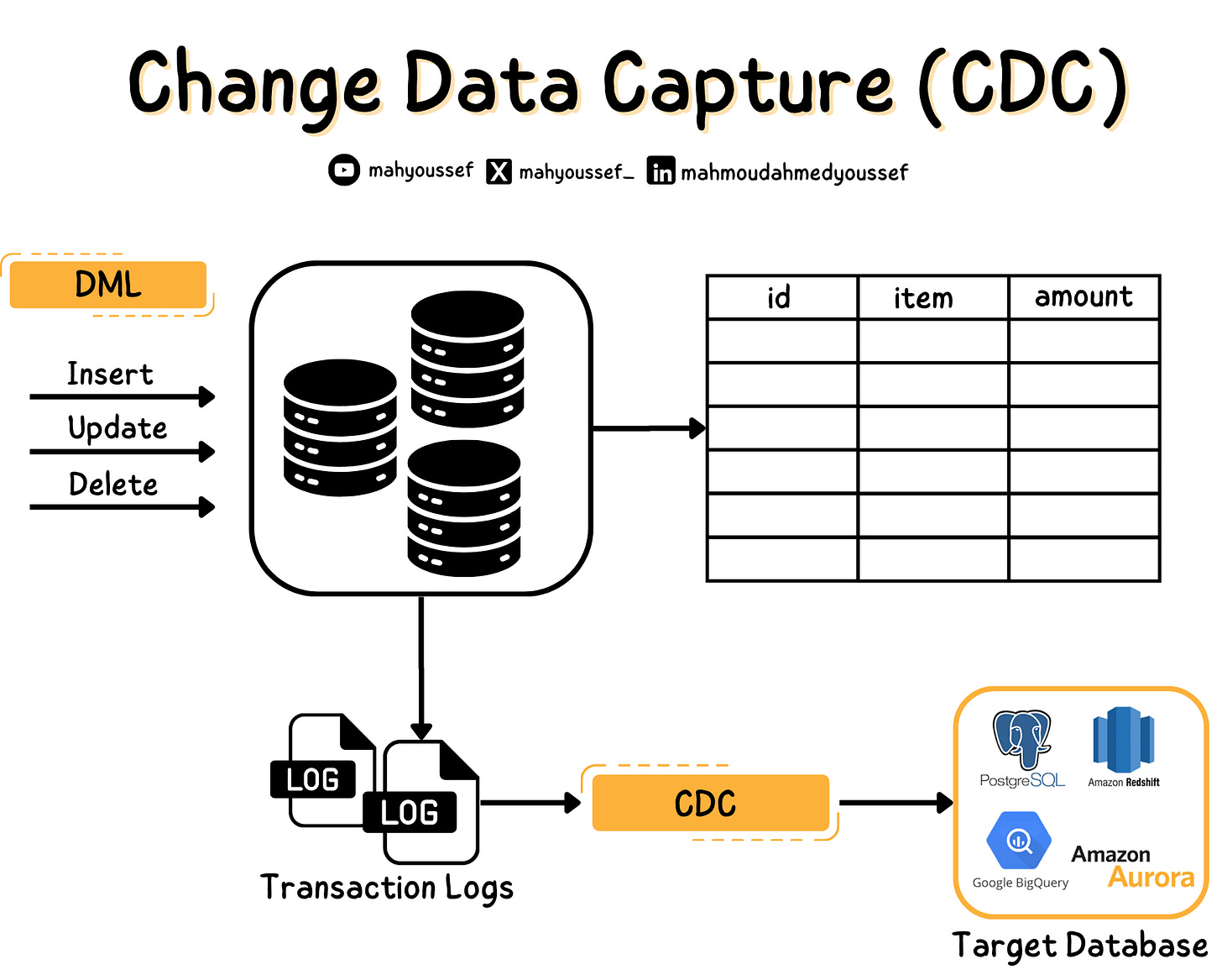 الـ CDC عبارة عن مجموعة من أنماط التصميم اللي بتستخدم لتحديد وتتبع التغييرات في قاعدة البيانات، زي الإضافات (inserts)، والتحديثات (updates)، وعمليات الحذف (deletes).