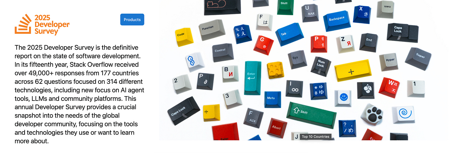 زي كل سنة بنستني Stack-Overflow Survey عشان نعرف احنا فين و احنا رايحين علي فين 🤷♀️ هنكلكم عن أهم قسمين وهما ال Technology وقسم ال AI بقية الأقسام زي ال Work, Developers مبتقدمش معلومات مفيدة كثير لينا كمبرمجين من الوطن العربي.