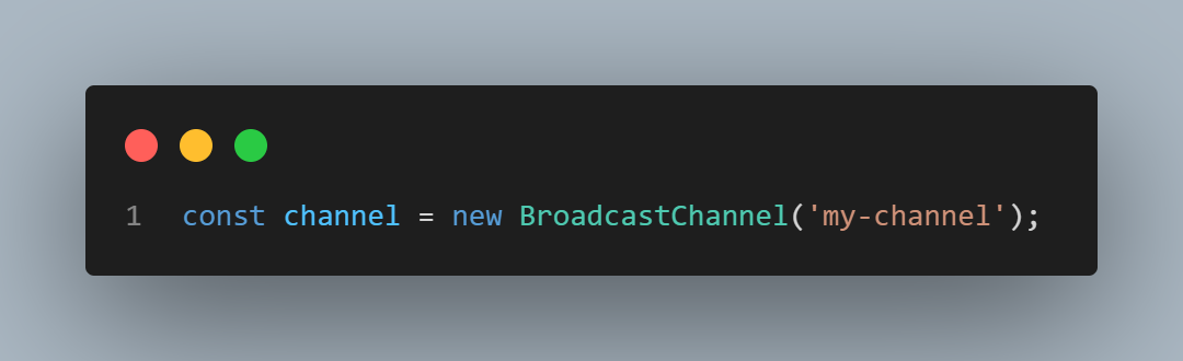 يمكن إنشاء قناة للتواصل بين علامات التبويب المختلفة عن طريق الـ constructor الخاص بالـ BroadcastChannel وبواسطة الـ new keyword، كالمثال التالي: