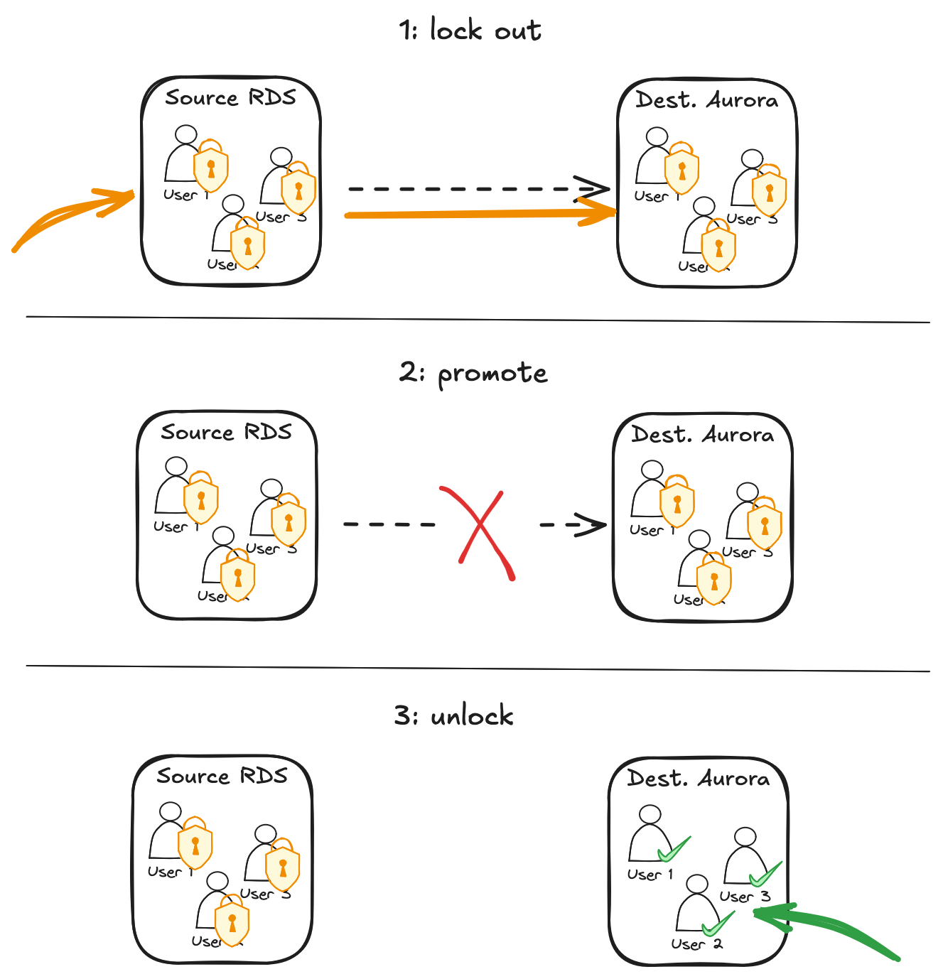 ูุนูู ูู ุง ููุฌู ูุนู ู โpromotionโ ููู database replica ููุญููููุง ูู standalone Aurora clusterุ ูุงุฒู ุนู ููุฉ ุงูู cutover ูุญุตู โู ุฑุฉ ูุงุญุฏุฉโ ููู ุงูู 4,000 tenantsุ ููู ูุงุญุฏ ููู: