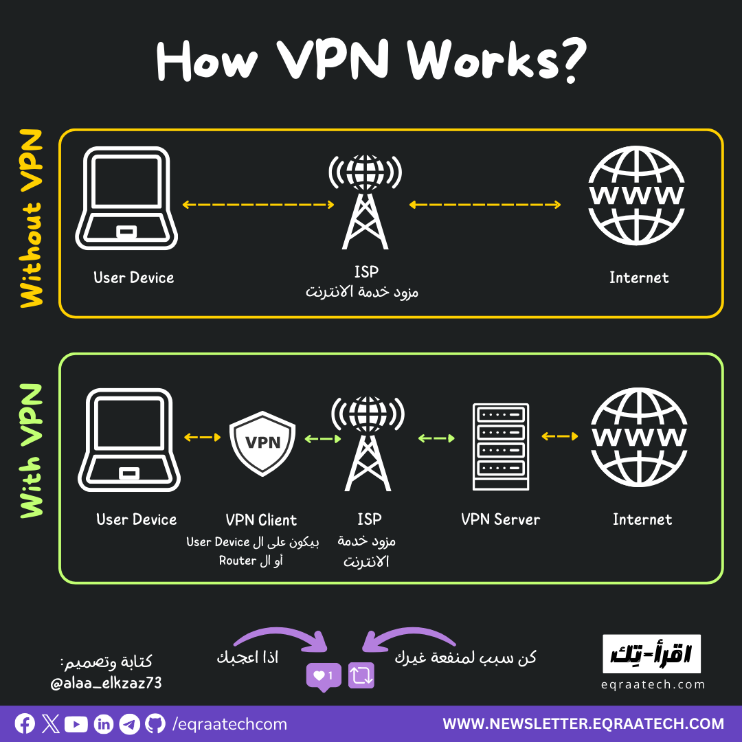 المبرمجين ليهم علاقة غريبة بالـ VPN بنستخدمه بشكل يومي أو شبه يومي بس في نفس الوقت مش عارفين كل تفاصيله لأننا مش بتوع شبكات, النهارده هنتكلم عن أهم الحاجات اللي لازم أي مبرمج يعرفها عن الـ VPN: هو إيه، بيحل مشاكل إيه، بيشتغل إزاي، مميزاته وعيوبه، وإزاي تختار VPN مناسب من غير ما تقع في فخ التسويق .